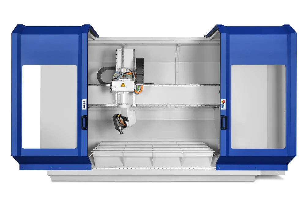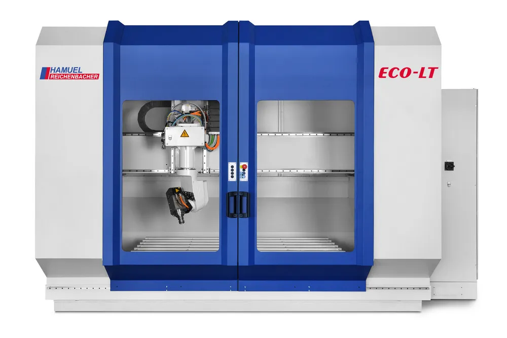 The machining centre ECO-LT is to expand the proven ECO-NT series of Reichenbacher Hamuel by a version available at a favourable price. It has specifically been developed for the machining of plastics, aluminium and composites (CFRP, GRP) and permits the fully automated milling of cutouts, circumferences and profiles.