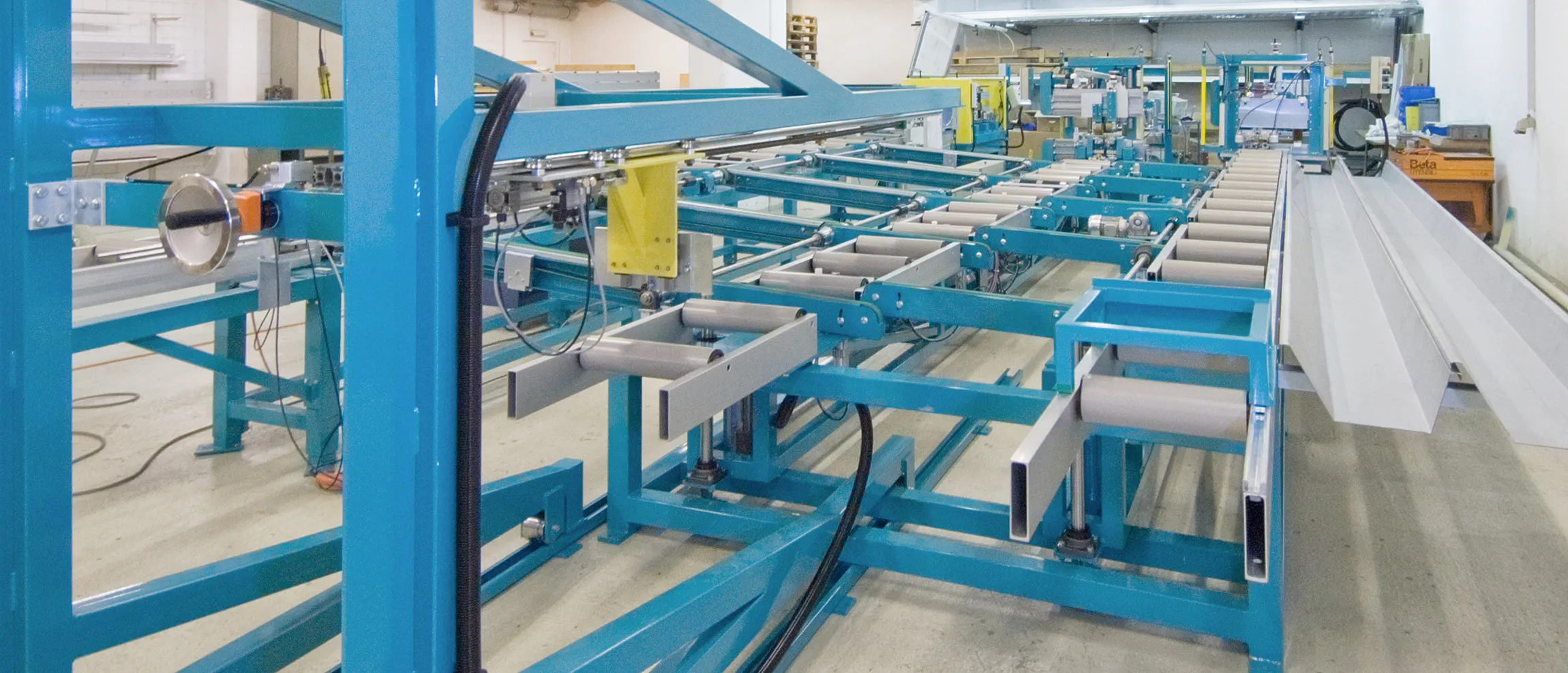 Standardised version of a conveyor system for the combined knurling and assembly process. The conveyor can be ordered in different variants so that the system corresponds to the material flow at the customer. In addition, several options are available.