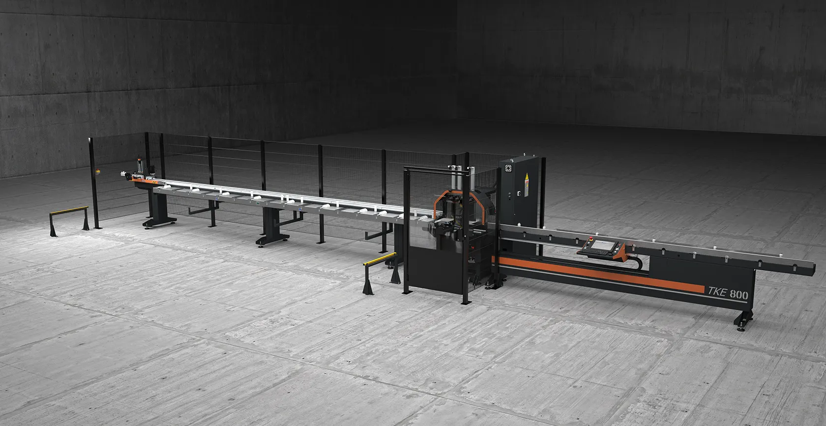 CSemi-automatic CNC cutting-off centre with horizontal blade feed, 2 controlled axes, designed for cutting profiles made of aluminium, PVC, light alloys in general. It performs automatic cutting according to predefined and optimized cutting lists. The machine is intended to perform cutting at an angle from 45° to 135° or from 22°30’ to 157°30’. It can be fitted with customised horizontal and vertical drilling units for specific automatic machining operations. The workpieces are machined in line. They are loaded from the feeder side and are to be unloaded manually on the opposite side.